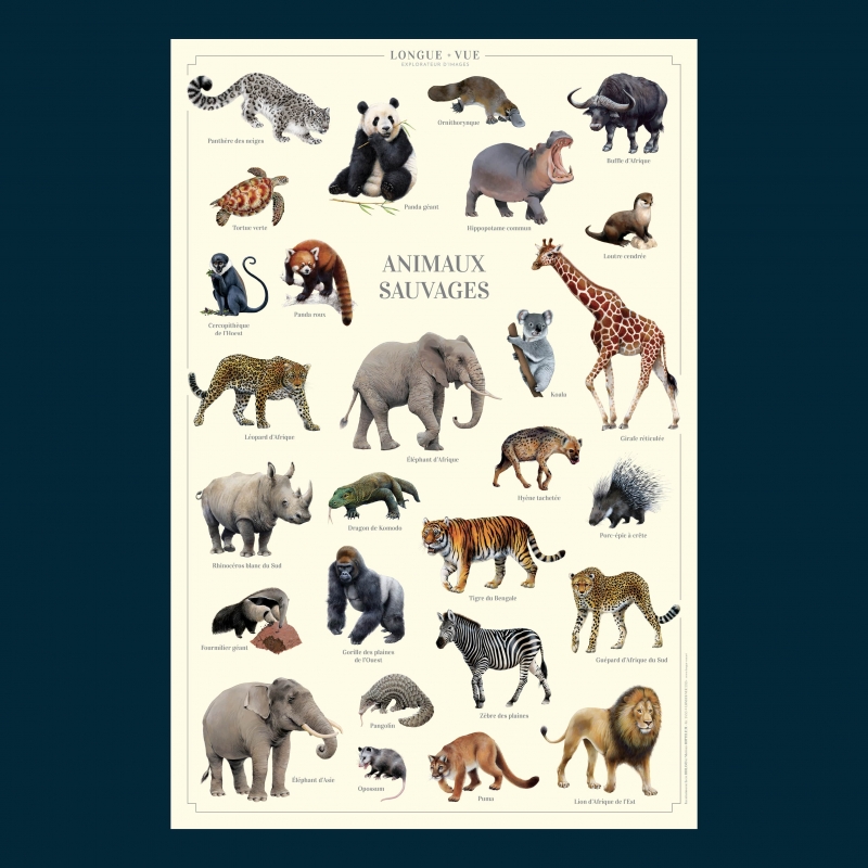 Affiche 40 x 60 cm - Animaux sauvages - Illustration de Lucye RIOLAND et Matthieu ROTTELEUR - Collection Animaux sauvages : Existe aussi en carte double 42 x 10 cm et affiche 24 x 30 cm.