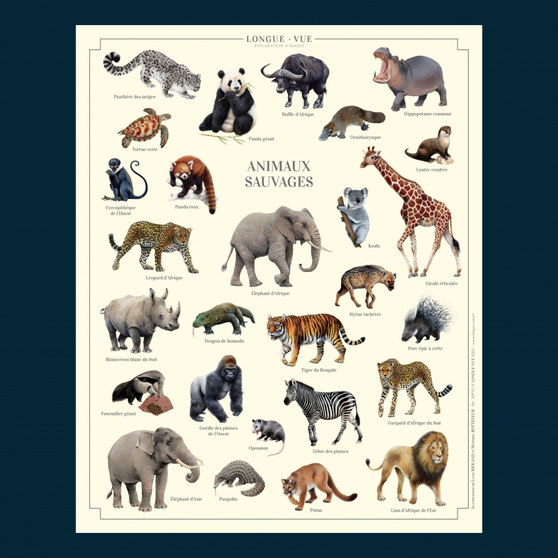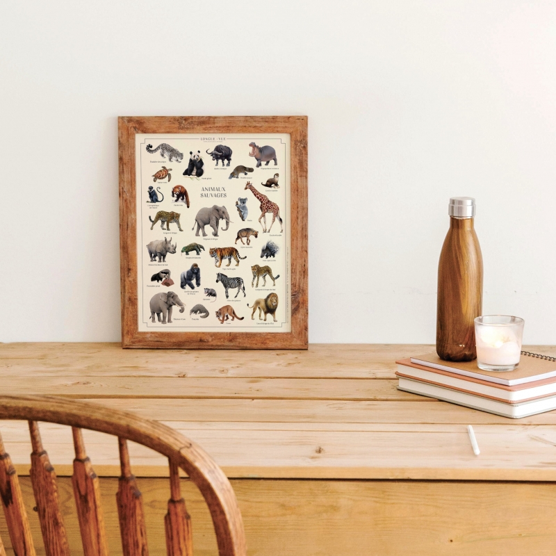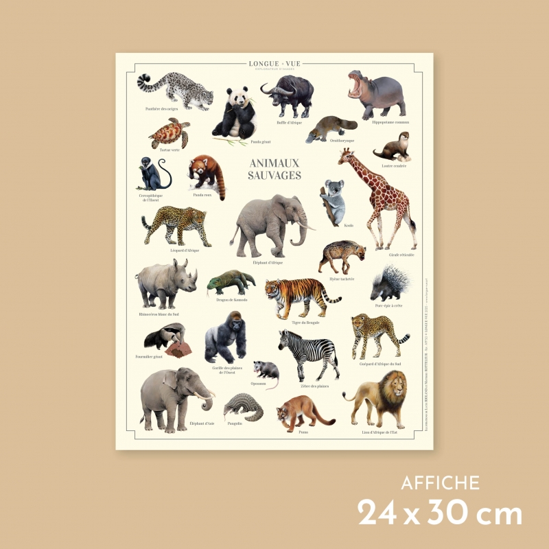 Affiche 24 x 30 cm - Animaux sauvages - Illustrations de Lucye Rioland et Matthieu ROTTELEUR - Collection Animaux sauvages - Couleur du fond : Beige.