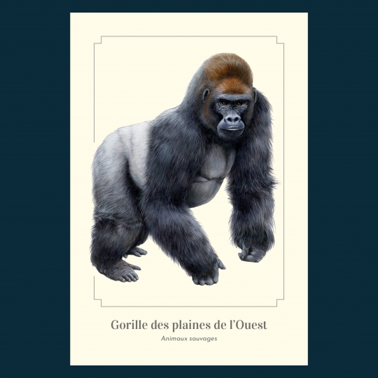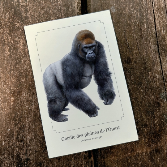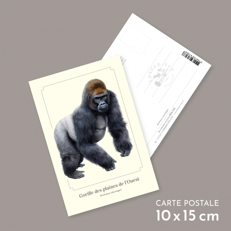 Carte postale 10 x 15 cm - Gorille des plaines de l’Ouest - Illustration de Lucye Rioland - Collection Animaux sauvages.