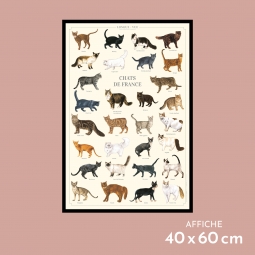 Affiche 24 x 30 cm - Chats de France - Illustration de Sandrine LEFEBVRE - Collection Chats - Couleur du fond : Beige.