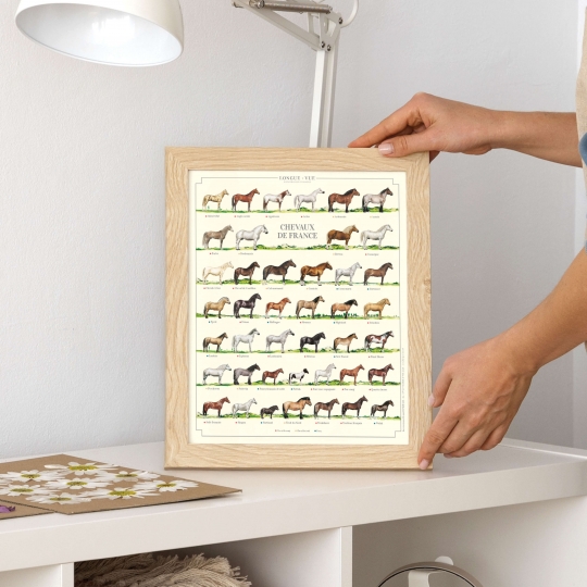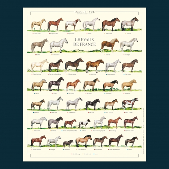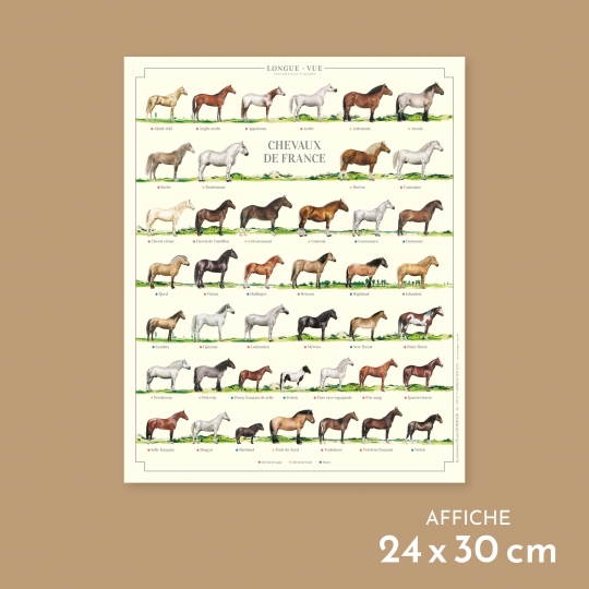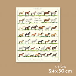Affiche 24 x 30 cm - Chevaux de France - Illustrations d'Elodie Dumoulin - Collection Animaux domestiques - Couleur du fond : Beige.