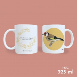Mug 325 ml - Mésange bleue - Illustration de Pascal ROBIN - Collection Oiseaux des jardins et des haies. Mésange bleue : Taille : environ 12 cm, envergure : de 12 à 14 cm, poids : de 9 à 12 g, longévité : 15 ans. La mésange bleue est une espèce facilement identifiable de passereaux, avec son bec court, sa petite taille ainsi que son joli plumage à dominantes bleue et jaune. Elle se nourrit majoritairement des œufs d'insectes et des larves vivant au niveau de la cime des arbres et à l'extrémité des branches. Son chant est presque toujours un trille très aigu. Migratrice partielle, elle se déplace d'un arbre à l'autre d’un vol oscillant, ou parcourt de longues distances d'un vol ondulant.