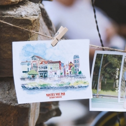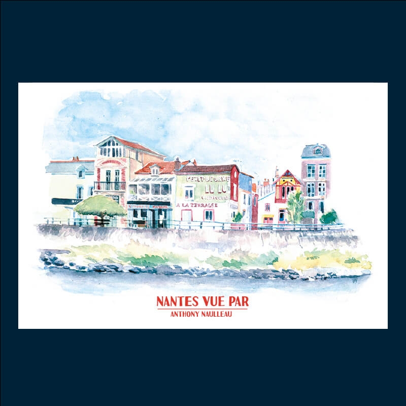 Carte postale 10 x 15 cm - Port de Trentemoult depuis la Loire - Illustration d'Anthony NAULLEAU - Collection Nantes - Couleur du fond : Beige.