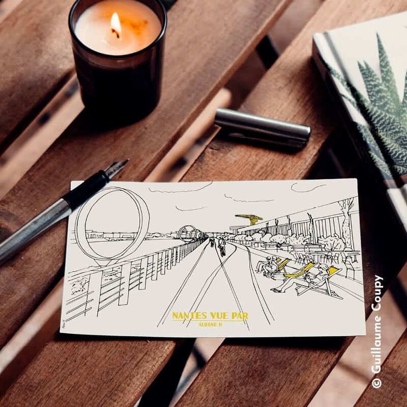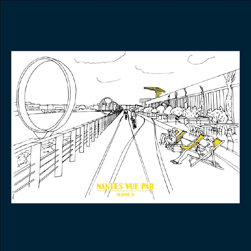 Albane H (Albane HABANS). Nantes, La Baule, Noirmoutier en posters, en tote bags, à colorier ? Aucune ville ne résiste à Albane Habans. C’est d’abord Nantes qui a inspiré le projet de l’illustratrice. Elle a en effet lancé une gamme de produits autour d’illustrations de la ville, au trait noir. Petits et grands peuvent alors se prêter au jeu du coloriage… Toutes les illustrations sont dessinées à la main. Entre autres affiches et jolies cartes illustrées, Albane Habans propose de vous amuser en donnant à la France vos couleurs préférées !
