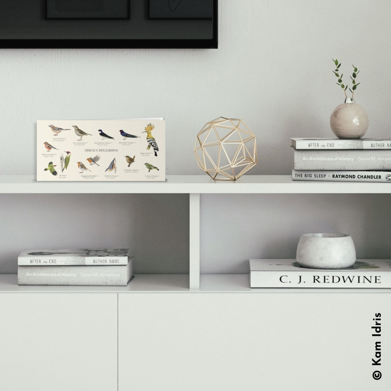 Carte double 42 x 10 cm - Oiseaux des plages et des marais côtiers - Existe en affiche 40 x 60 cm, en affiche 24 x30 cm et en affiche "Oiseaux de France" 80 x 60 cm. Illustrations d’Isabelle Arslanian ,  de François Desbordes et de Pascal Robin.
