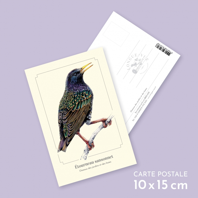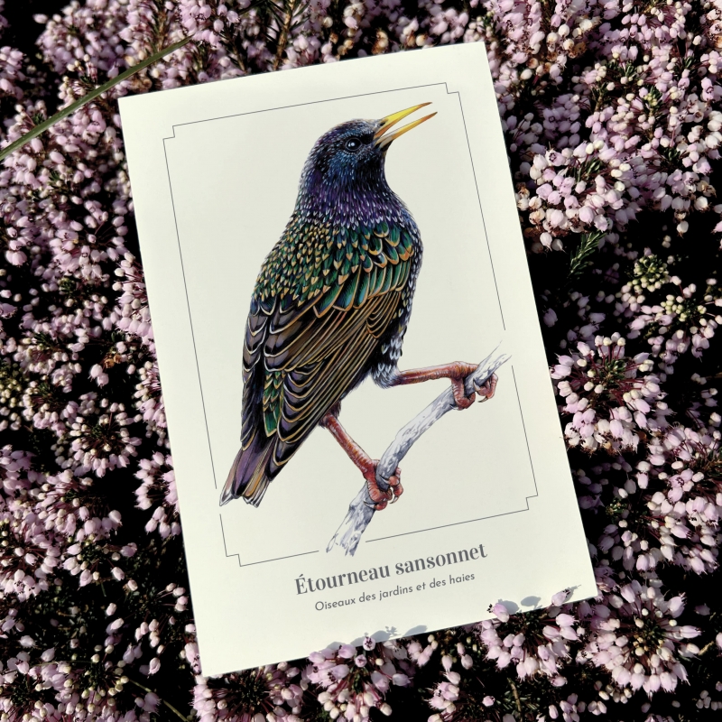 Carte postale 10 x 15 cm - Geai des chênes - Illustration de Lucye Rioland - Collection Oiseaux des jardins et des haies.