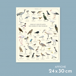 Affiche 24 x 30 cm - Oiseaux des plages, des mers et des marais - Illustrations de Pascal ROBIN - Isabelle ARSLANIAN - François DESBORDES - Collection Oiseaux des plages, des mers et des marais - Couleur du fond : Beige.