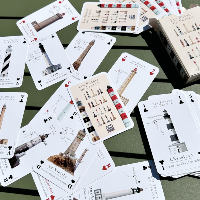 Découvrez avec ce jeu de 54 cartes les plus belles illustrations des phares de France veillant sur nos côtes.