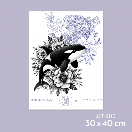Affiche 40 x 30 cm - L'orque - Illustration de Son of the Beach - Collection capsule.