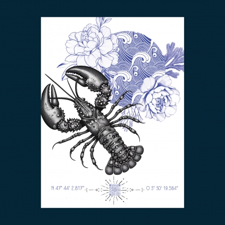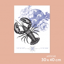Affiche 40 x 30 cm - Le homard- Illustration de Son of the Beach - Collection capsule.