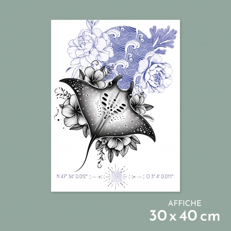 Affiche 40 x 30 cm - La raie - Illustration de Son of the Beach - Collection capsule.