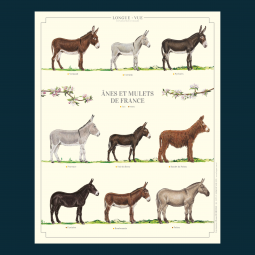 Affiche 24 x 30 cm - Ânes et mulets de France - Illustration d'Elodie DUMOULIN - Collection Ânes et mulets.